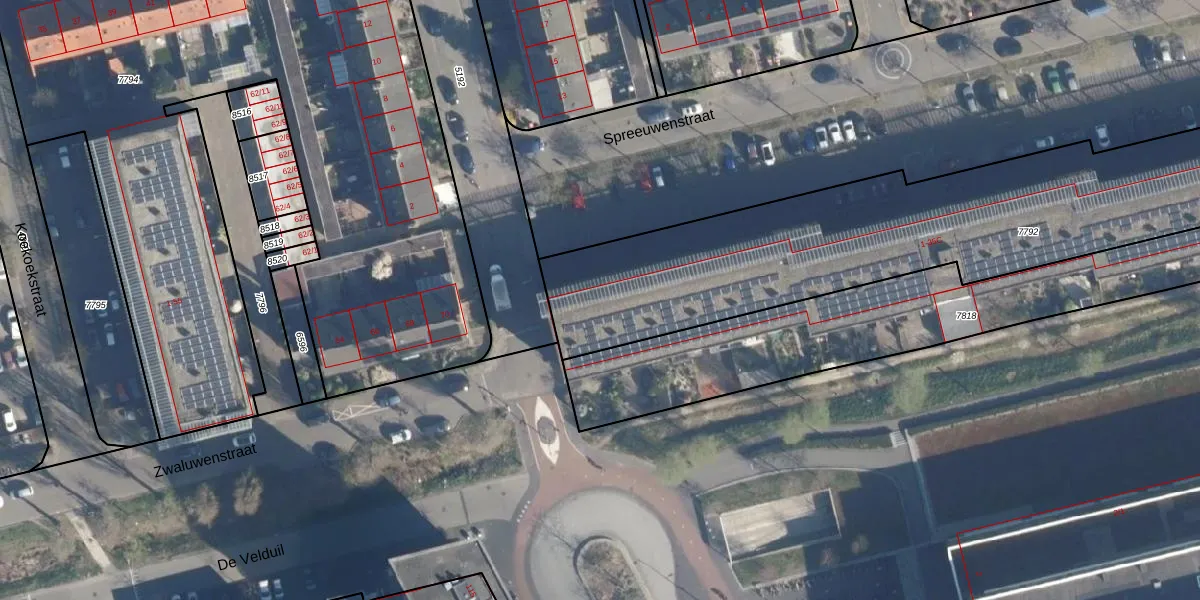 Spreeuwenstraat 1 is gelegen op kadastraal perceel AMF00A7792. Deze kadastrale aanduiding is uniek en wordt gebruikt door het Kadaster om eigendomsrechten en andere zakelijke rechten vast te leggen. Het perceel maakt onderdeel uit van de kadastrale gemeente Amersfoort.