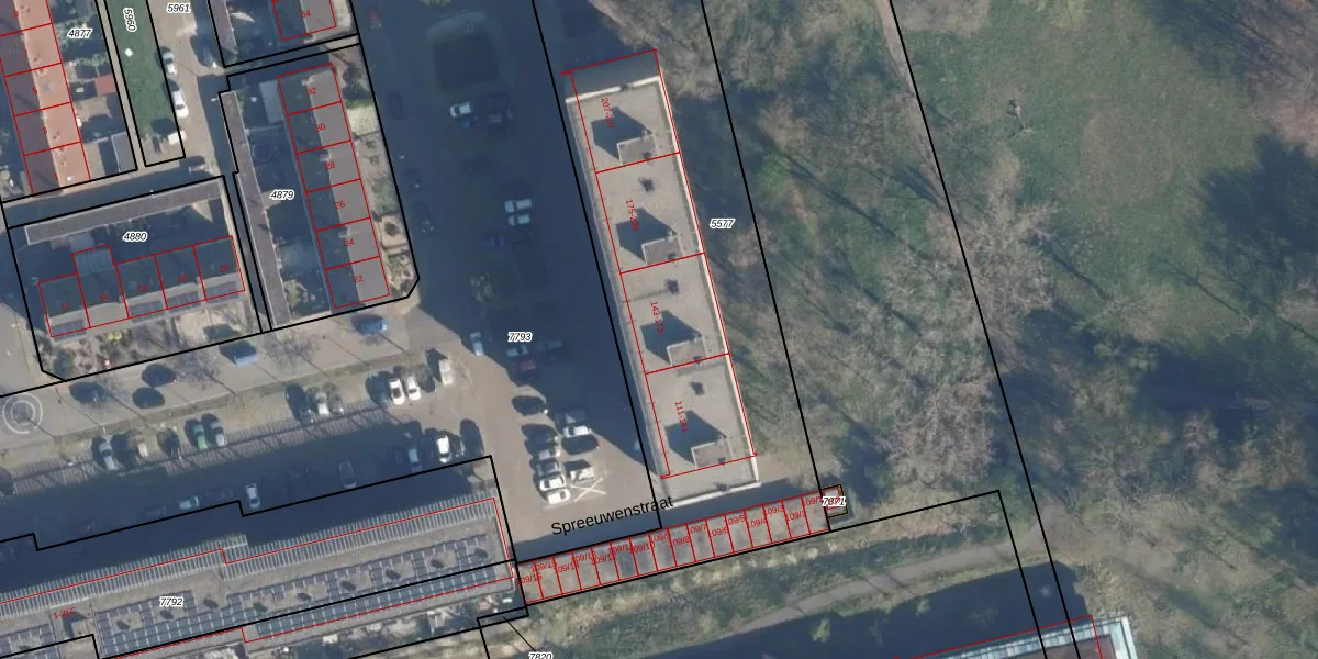 Spreeuwenstraat 155 is gelegen op kadastraal perceel AMF00A5577. Deze kadastrale aanduiding is uniek en wordt gebruikt door het Kadaster om eigendomsrechten en andere zakelijke rechten vast te leggen. Het perceel maakt onderdeel uit van de kadastrale gemeente Amersfoort.