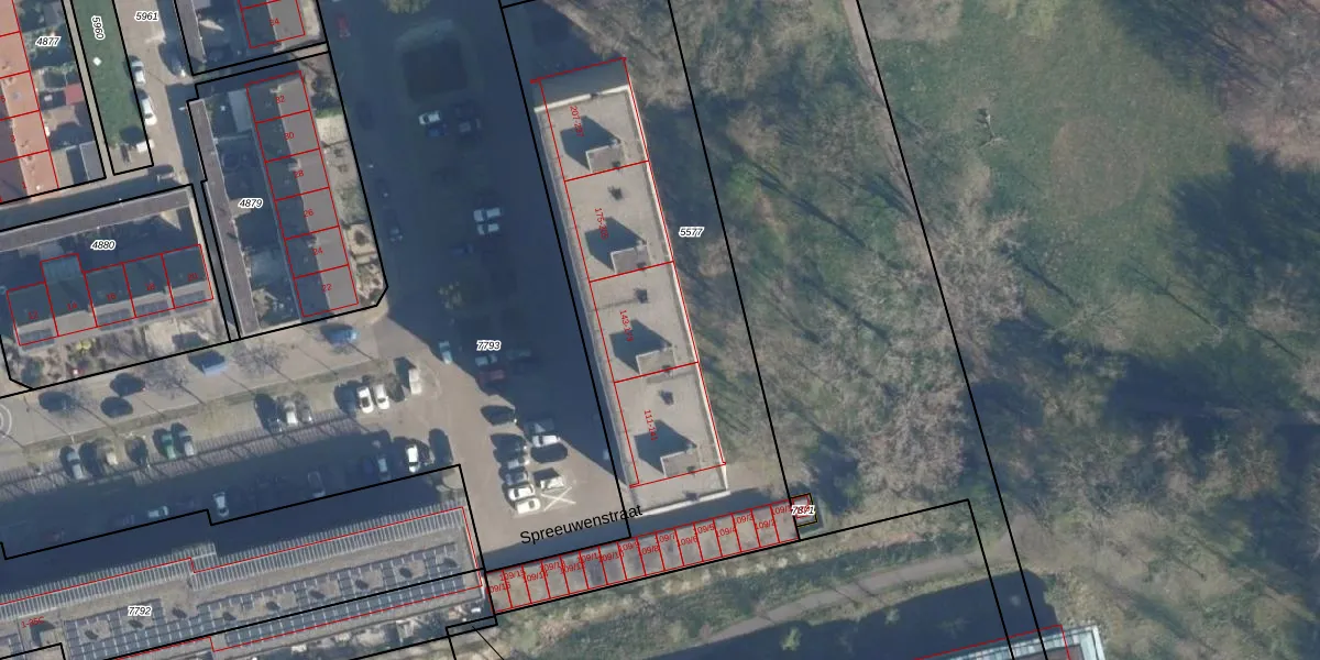 Spreeuwenstraat 171 is gelegen op kadastraal perceel AMF00A5577. Deze kadastrale aanduiding is uniek en wordt gebruikt door het Kadaster om eigendomsrechten en andere zakelijke rechten vast te leggen. Het perceel maakt onderdeel uit van de kadastrale gemeente Amersfoort.
