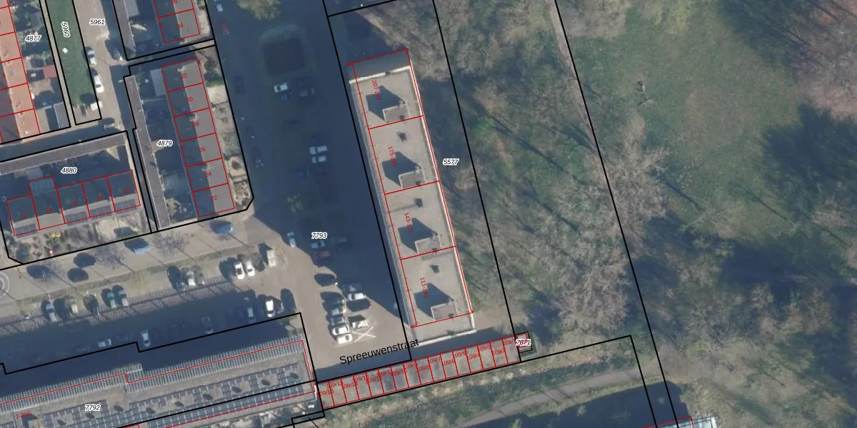 Spreeuwenstraat 173 is gelegen op kadastraal perceel AMF00A5577. Deze kadastrale aanduiding is uniek en wordt gebruikt door het Kadaster om eigendomsrechten en andere zakelijke rechten vast te leggen. Het perceel maakt onderdeel uit van de kadastrale gemeente Amersfoort.