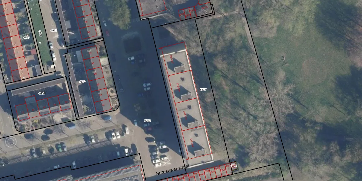 Spreeuwenstraat 191 is gelegen op kadastraal perceel AMF00A5577. Deze kadastrale aanduiding is uniek en wordt gebruikt door het Kadaster om eigendomsrechten en andere zakelijke rechten vast te leggen. Het perceel maakt onderdeel uit van de kadastrale gemeente Amersfoort.