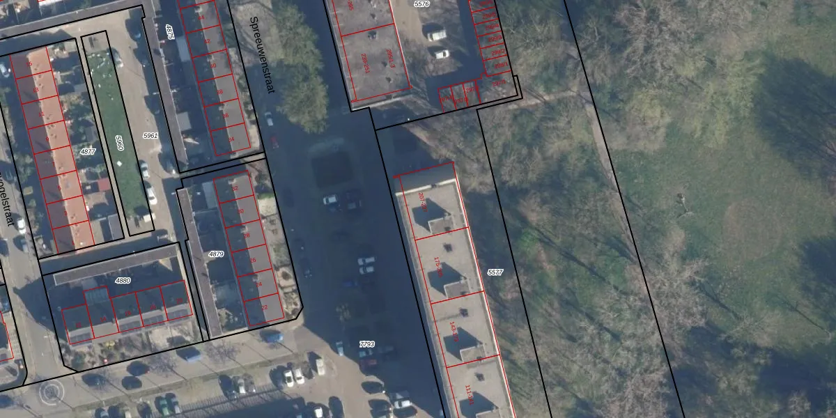 Spreeuwenstraat 215 is gelegen op kadastraal perceel AMF00A5577. Deze kadastrale aanduiding is uniek en wordt gebruikt door het Kadaster om eigendomsrechten en andere zakelijke rechten vast te leggen. Het perceel maakt onderdeel uit van de kadastrale gemeente Amersfoort.