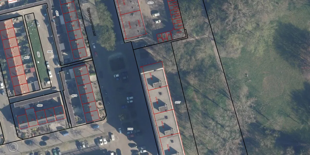 Spreeuwenstraat 227 is gelegen op kadastraal perceel AMF00A5577. Deze kadastrale aanduiding is uniek en wordt gebruikt door het Kadaster om eigendomsrechten en andere zakelijke rechten vast te leggen. Het perceel maakt onderdeel uit van de kadastrale gemeente Amersfoort.