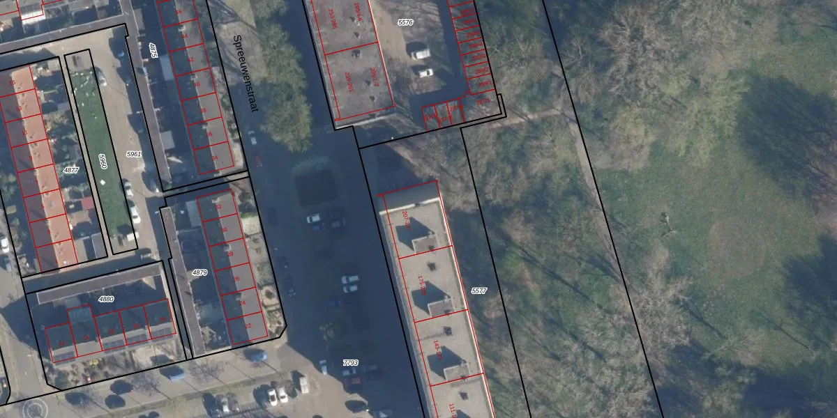 Spreeuwenstraat 233 is gelegen op kadastraal perceel AMF00A5577. Deze kadastrale aanduiding is uniek en wordt gebruikt door het Kadaster om eigendomsrechten en andere zakelijke rechten vast te leggen. Het perceel maakt onderdeel uit van de kadastrale gemeente Amersfoort.