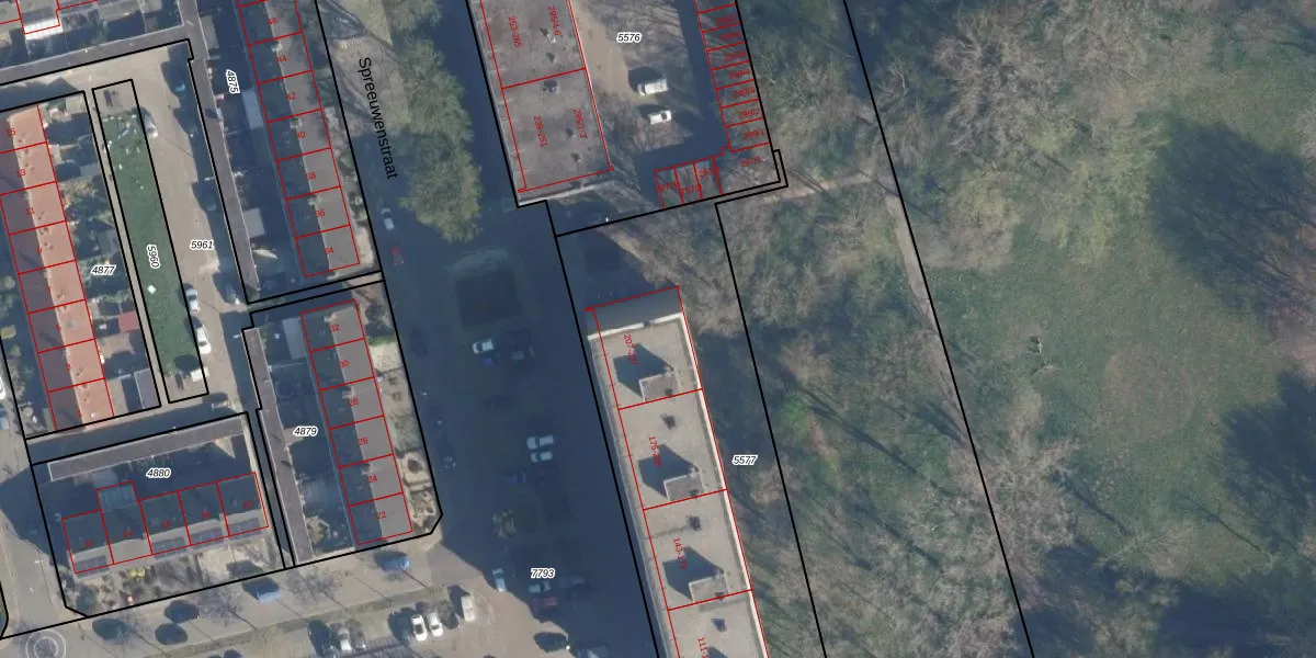 Spreeuwenstraat 237 is gelegen op kadastraal perceel AMF00A5577. Deze kadastrale aanduiding is uniek en wordt gebruikt door het Kadaster om eigendomsrechten en andere zakelijke rechten vast te leggen. Het perceel maakt onderdeel uit van de kadastrale gemeente Amersfoort.