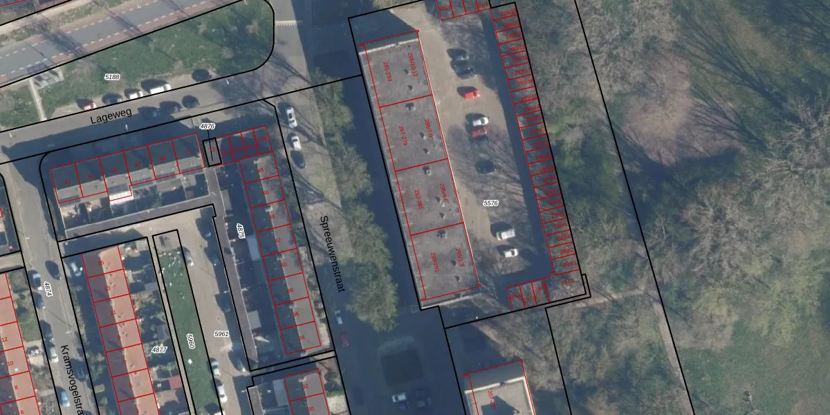 Spreeuwenstraat 255 is gelegen op kadastraal perceel AMF00A5576. Deze kadastrale aanduiding is uniek en wordt gebruikt door het Kadaster om eigendomsrechten en andere zakelijke rechten vast te leggen. Het perceel maakt onderdeel uit van de kadastrale gemeente Amersfoort.