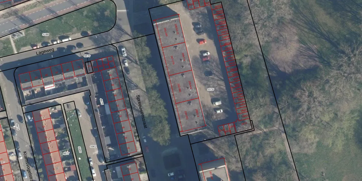 Het perceel waarop Spreeuwenstraat 259 staat heeft een oppervlakte van 3032 m². Dit is een zeer groot perceel. De perceeloppervlakte wordt geregistreerd door het Kadaster. Gedetailleerde informatie over de maten van dit perceel kunt u vinden in het rapport Kadastrale kaart met maatvoering van Spreeuwenstraat 259.