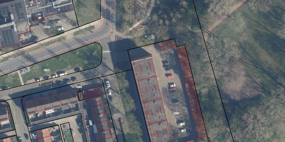 Spreeuwenstraat 287 is gelegen op kadastraal perceel AMF00A5576. Deze kadastrale aanduiding is uniek en wordt gebruikt door het Kadaster om eigendomsrechten en andere zakelijke rechten vast te leggen. Het perceel maakt onderdeel uit van de kadastrale gemeente Amersfoort.