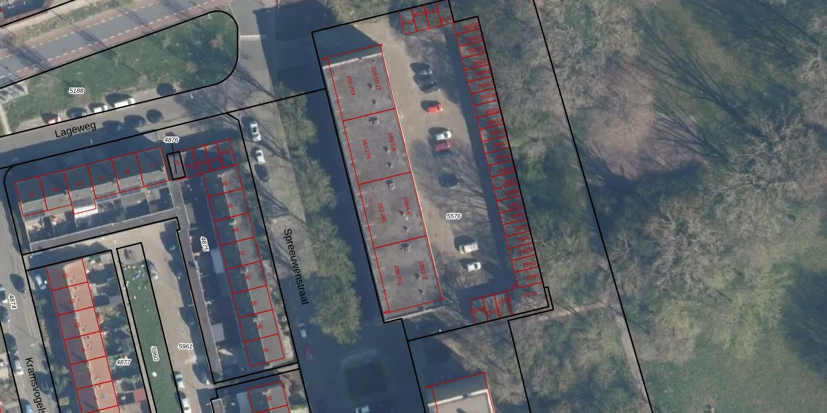Het perceel waarop Spreeuwenstraat 295-5 staat heeft een oppervlakte van 3032 m². Dit is een zeer groot perceel. De perceeloppervlakte wordt geregistreerd door het Kadaster. Gedetailleerde informatie over de maten van dit perceel kunt u vinden in het rapport Kadastrale kaart met maatvoering van Spreeuwenstraat 295-5.