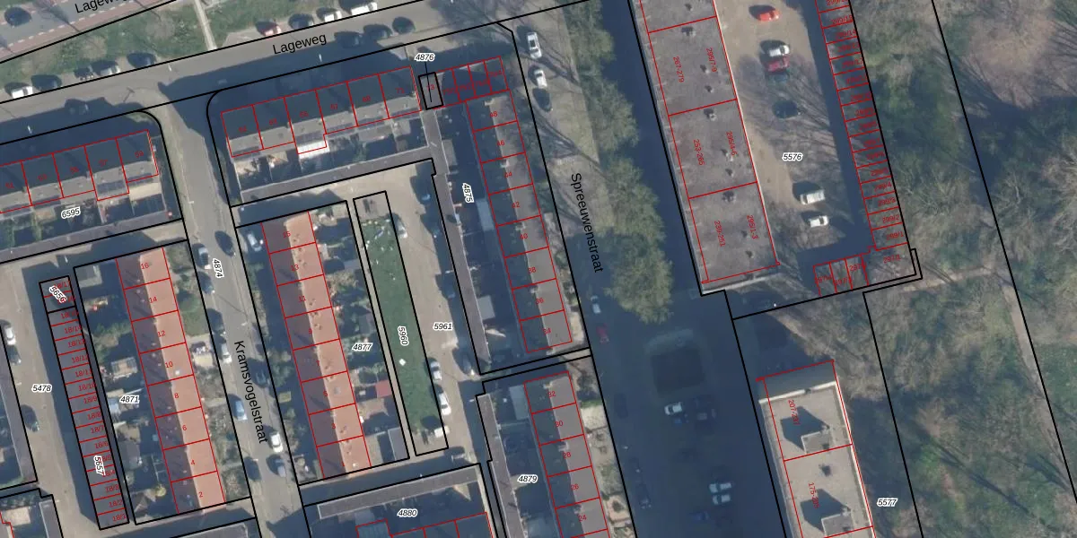 Spreeuwenstraat 38 is gelegen op kadastraal perceel AMF00A4875. Deze kadastrale aanduiding is uniek en wordt gebruikt door het Kadaster om eigendomsrechten en andere zakelijke rechten vast te leggen. Het perceel maakt onderdeel uit van de kadastrale gemeente Amersfoort.
