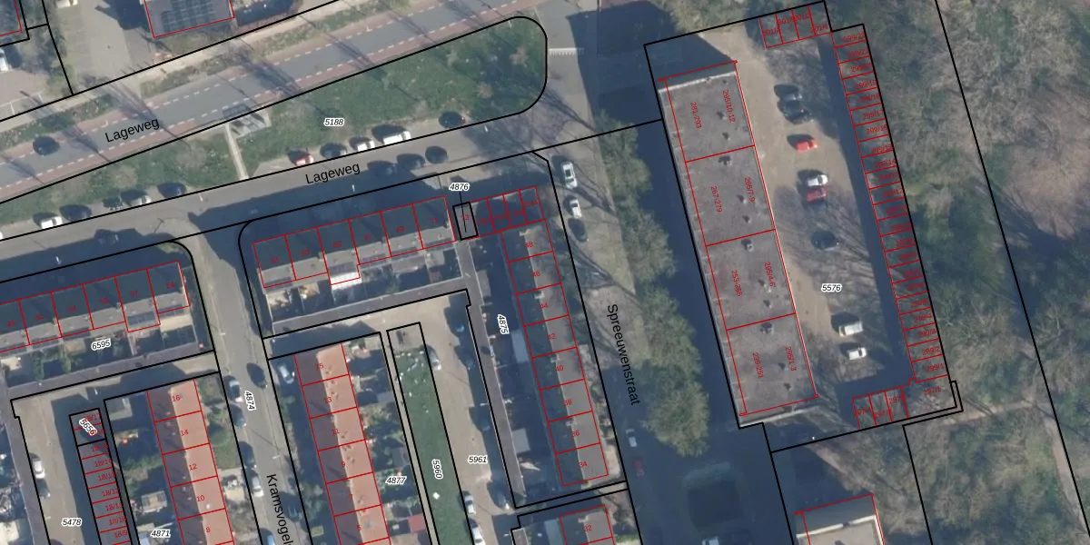 Spreeuwenstraat 46 is gelegen op kadastraal perceel AMF00A4875. Deze kadastrale aanduiding is uniek en wordt gebruikt door het Kadaster om eigendomsrechten en andere zakelijke rechten vast te leggen. Het perceel maakt onderdeel uit van de kadastrale gemeente Amersfoort.