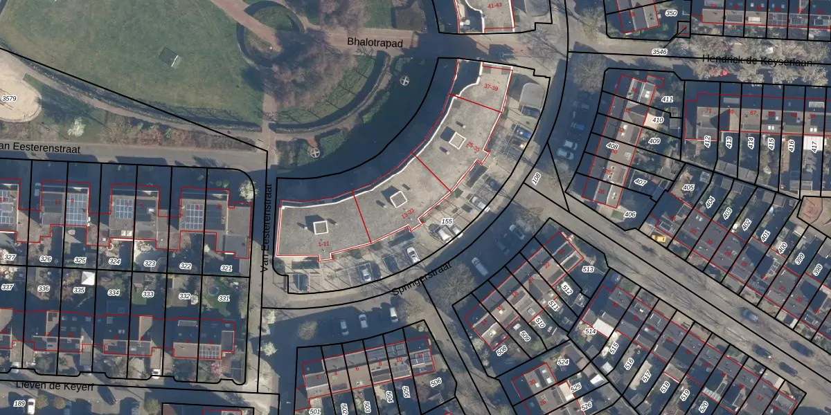 Het perceel waarop Springerstraat 21 staat heeft een oppervlakte van 2040 m². Dit is een zeer groot perceel. De perceeloppervlakte wordt geregistreerd door het Kadaster. Gedetailleerde informatie over de maten van dit perceel kunt u vinden in het rapport Kadastrale kaart met maatvoering van Springerstraat 21.