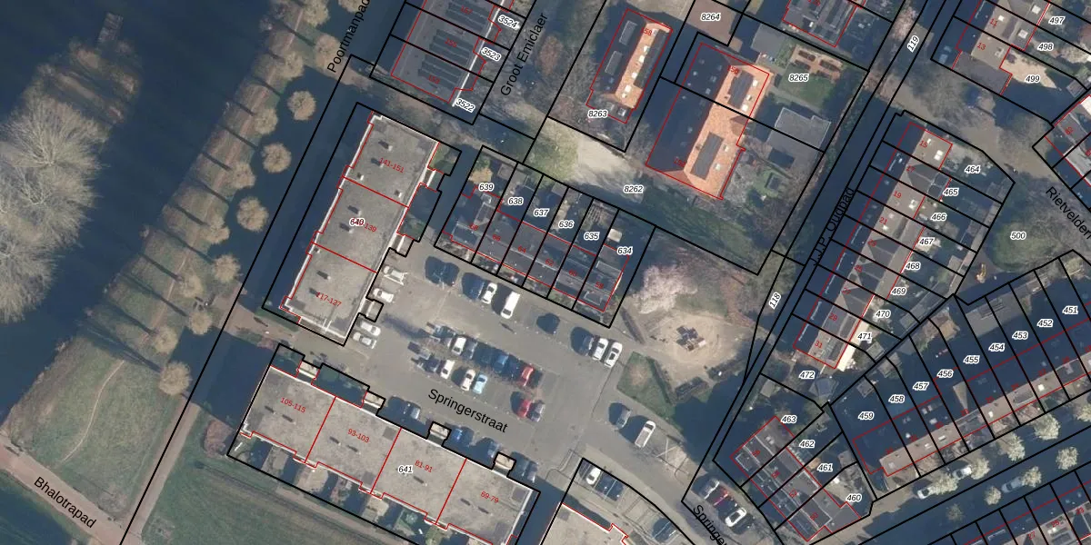 Springerstraat 62 is gelegen op kadastraal perceel AMF00O636. Deze kadastrale aanduiding is uniek en wordt gebruikt door het Kadaster om eigendomsrechten en andere zakelijke rechten vast te leggen. Het perceel maakt onderdeel uit van de kadastrale gemeente Amersfoort.