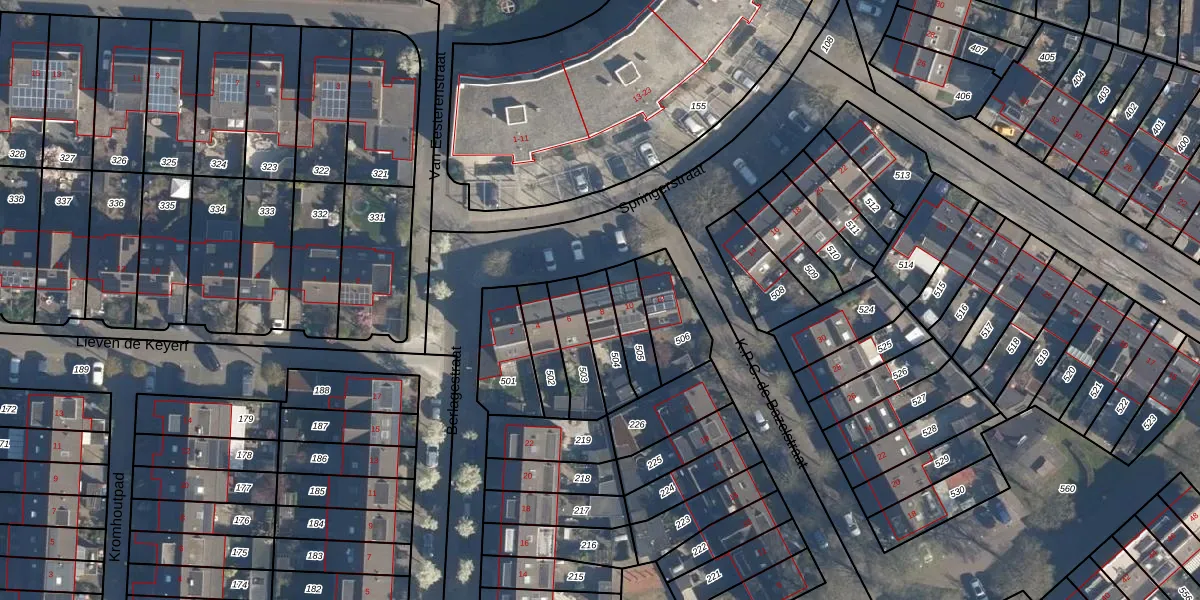 Het perceel waarop Springerstraat 8 staat heeft een oppervlakte van 120 m². Dit is een middelgroot perceel. De perceeloppervlakte wordt geregistreerd door het Kadaster. Gedetailleerde informatie over de maten van dit perceel kunt u vinden in het rapport Kadastrale kaart met maatvoering van Springerstraat 8.
