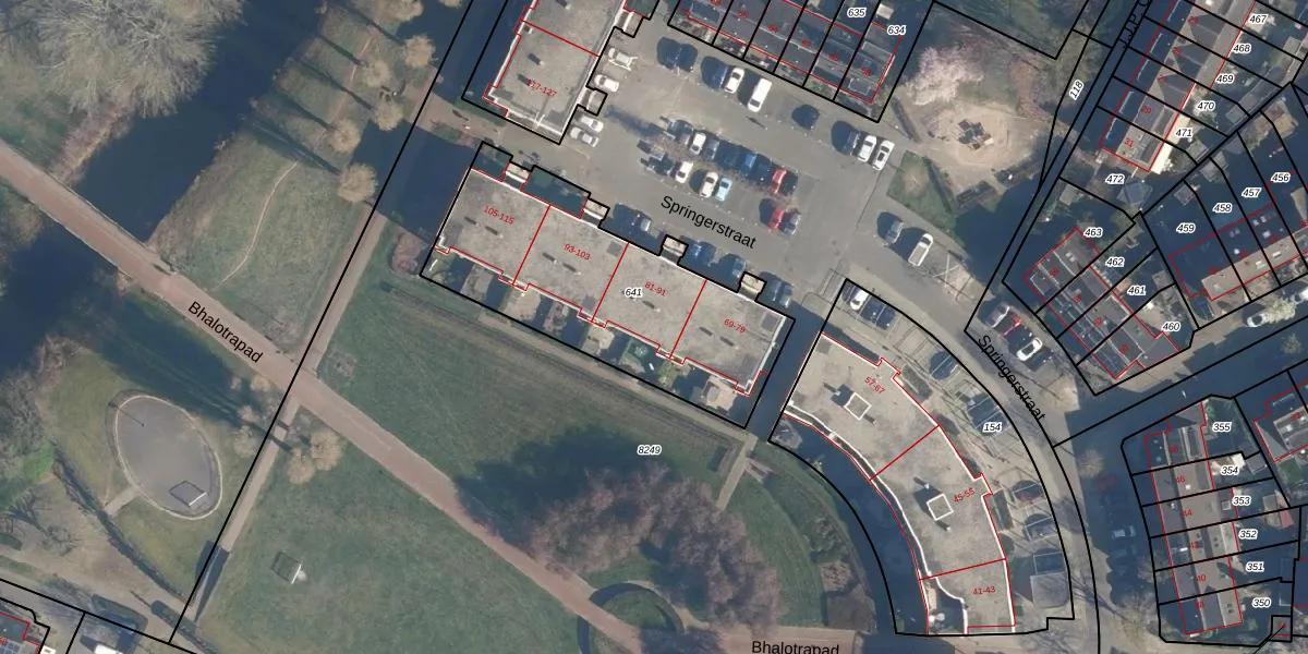 Springerstraat 85 is gelegen op kadastraal perceel AMF00O641. Deze kadastrale aanduiding is uniek en wordt gebruikt door het Kadaster om eigendomsrechten en andere zakelijke rechten vast te leggen. Het perceel maakt onderdeel uit van de kadastrale gemeente Amersfoort.