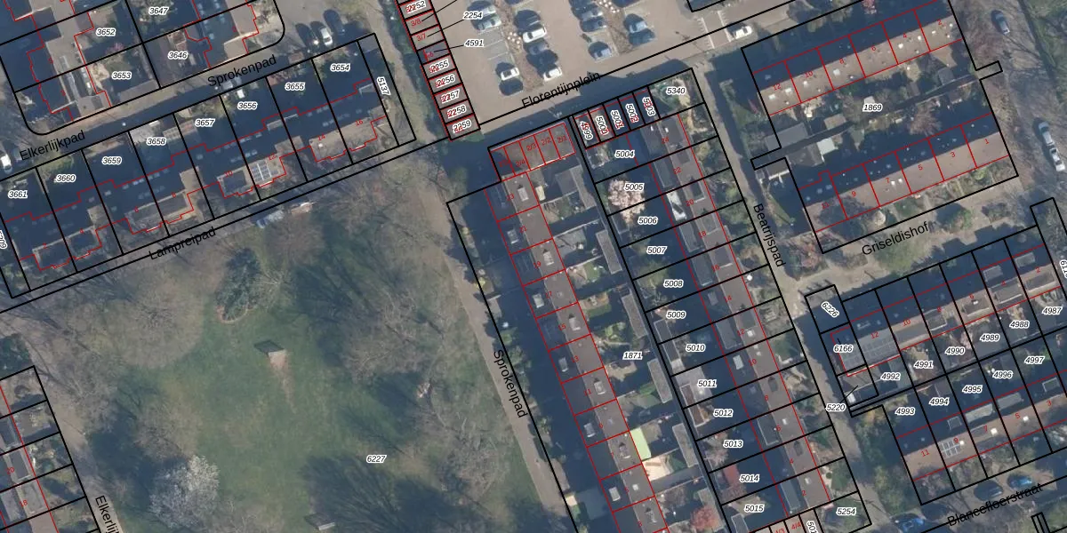 Sprokenpad 19 is gelegen op kadastraal perceel AMF00K1871. Deze kadastrale aanduiding is uniek en wordt gebruikt door het Kadaster om eigendomsrechten en andere zakelijke rechten vast te leggen. Het perceel maakt onderdeel uit van de kadastrale gemeente Amersfoort.