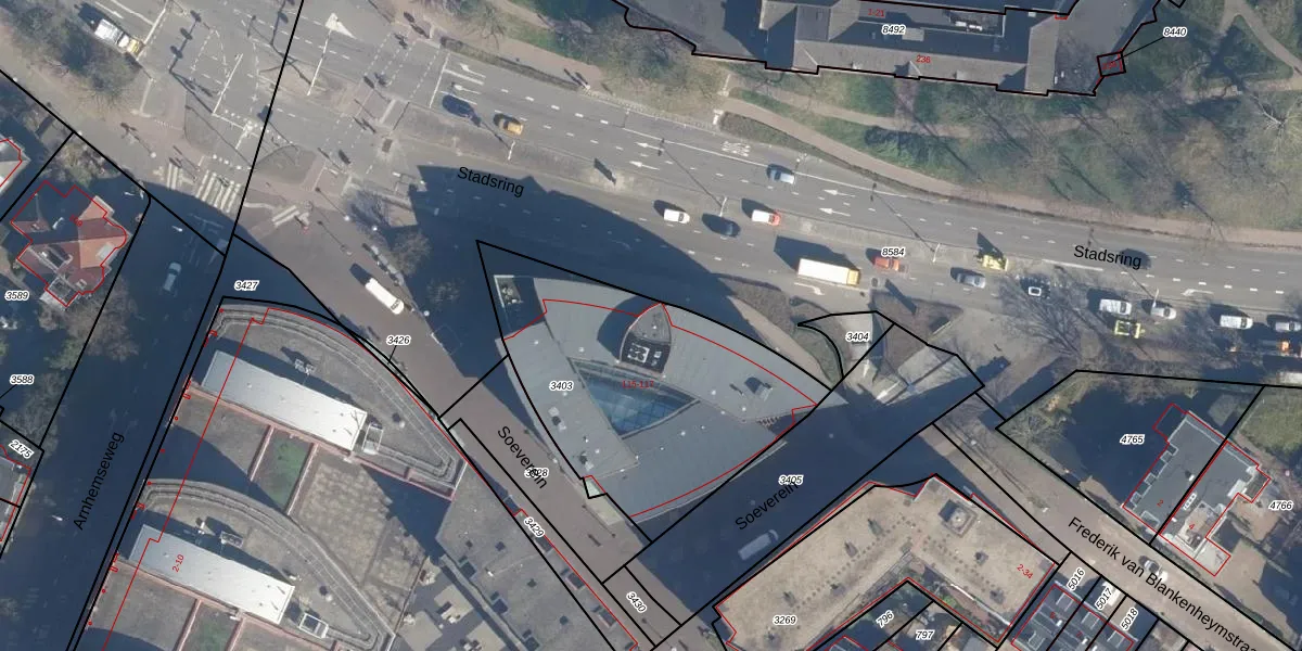 Stadsring 115 is gelegen op kadastraal perceel AMF00H3403. Deze kadastrale aanduiding is uniek en wordt gebruikt door het Kadaster om eigendomsrechten en andere zakelijke rechten vast te leggen. Het perceel maakt onderdeel uit van de kadastrale gemeente Amersfoort.