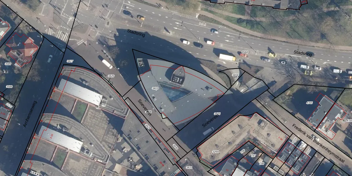 Stadsring 117 is gelegen op kadastraal perceel AMF00H3403. Deze kadastrale aanduiding is uniek en wordt gebruikt door het Kadaster om eigendomsrechten en andere zakelijke rechten vast te leggen. Het perceel maakt onderdeel uit van de kadastrale gemeente Amersfoort.