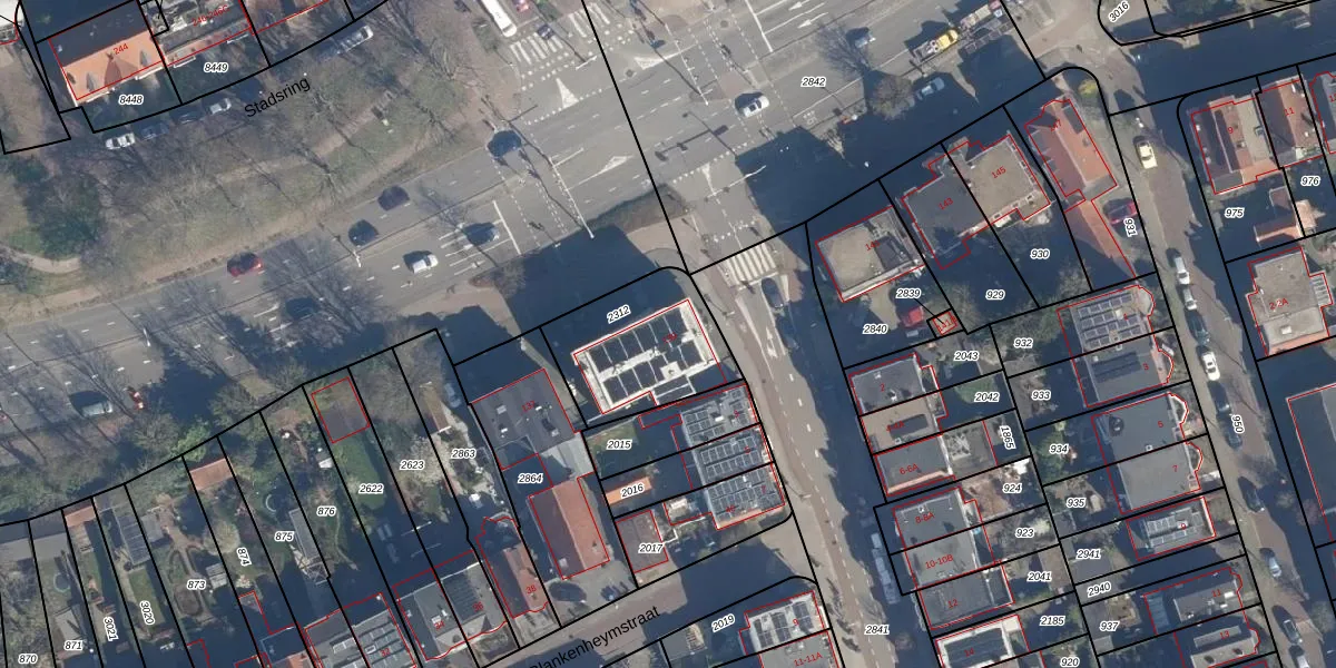 Gebruik de zoekbalk of klik op een perceel voor informatie over de adressen binnen dit perceel.