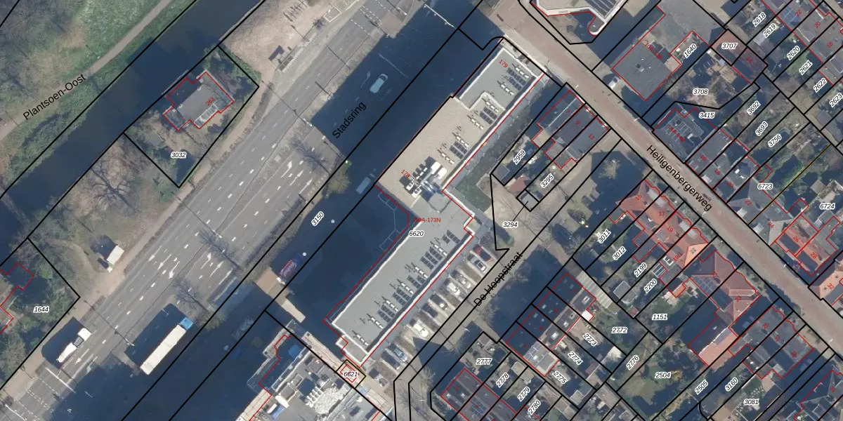 Het perceel waarop Stadsring 171-F staat heeft een oppervlakte van 2435 m². Dit is een zeer groot perceel. De perceeloppervlakte wordt geregistreerd door het Kadaster. Gedetailleerde informatie over de maten van dit perceel kunt u vinden in het rapport Kadastrale kaart met maatvoering van Stadsring 171-F.
