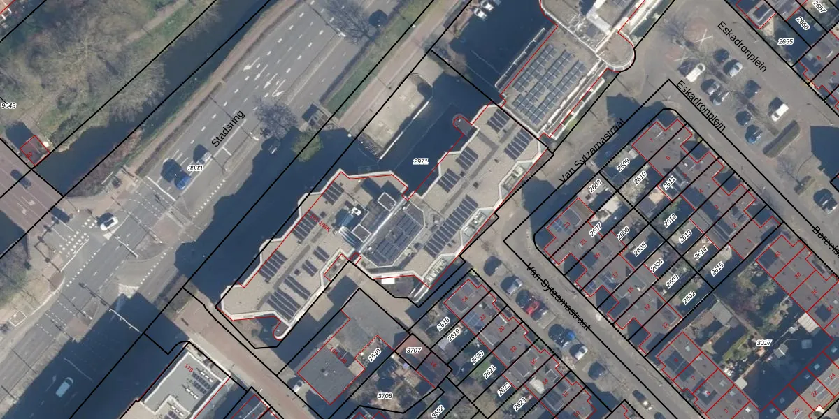 Het perceel waarop Stadsring 183-A staat heeft een oppervlakte van 2432 m². Dit is een zeer groot perceel. De perceeloppervlakte wordt geregistreerd door het Kadaster. Gedetailleerde informatie over de maten van dit perceel kunt u vinden in het rapport Kadastrale kaart met maatvoering van Stadsring 183-A.