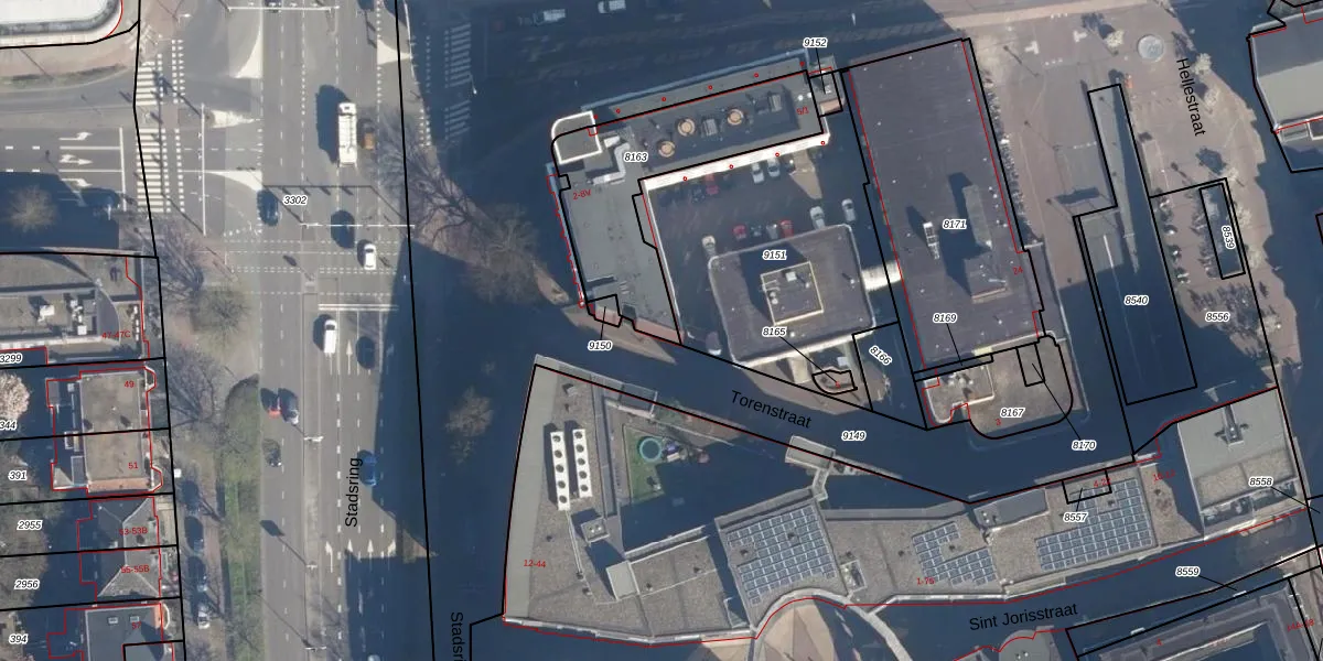 Het perceel waarop Stadsring 8-M staat heeft een oppervlakte van 625 m². Dit is een groot perceel. De perceeloppervlakte wordt geregistreerd door het Kadaster. Gedetailleerde informatie over de maten van dit perceel kunt u vinden in het rapport Kadastrale kaart met maatvoering van Stadsring 8-M.