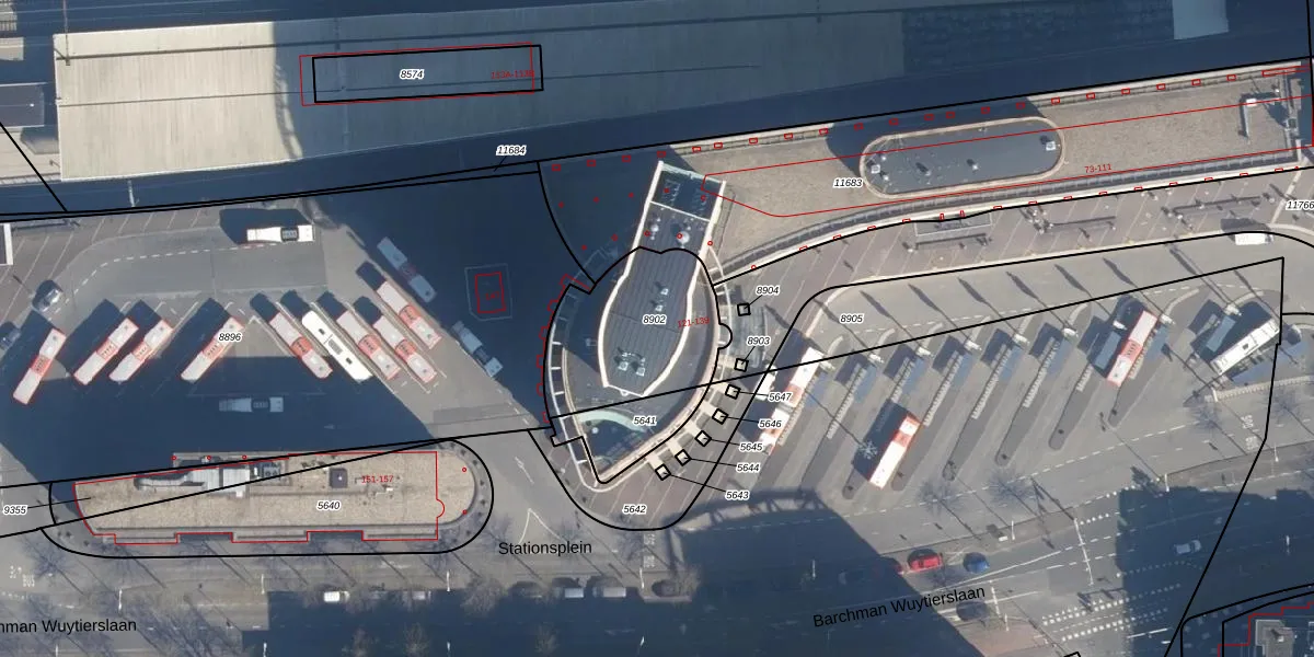 Het perceel waarop Stationsplein 129 staat heeft een oppervlakte van 523 m². Dit is een groot perceel. De perceeloppervlakte wordt geregistreerd door het Kadaster. Gedetailleerde informatie over de maten van dit perceel kunt u vinden in het rapport Kadastrale kaart met maatvoering van Stationsplein 129.