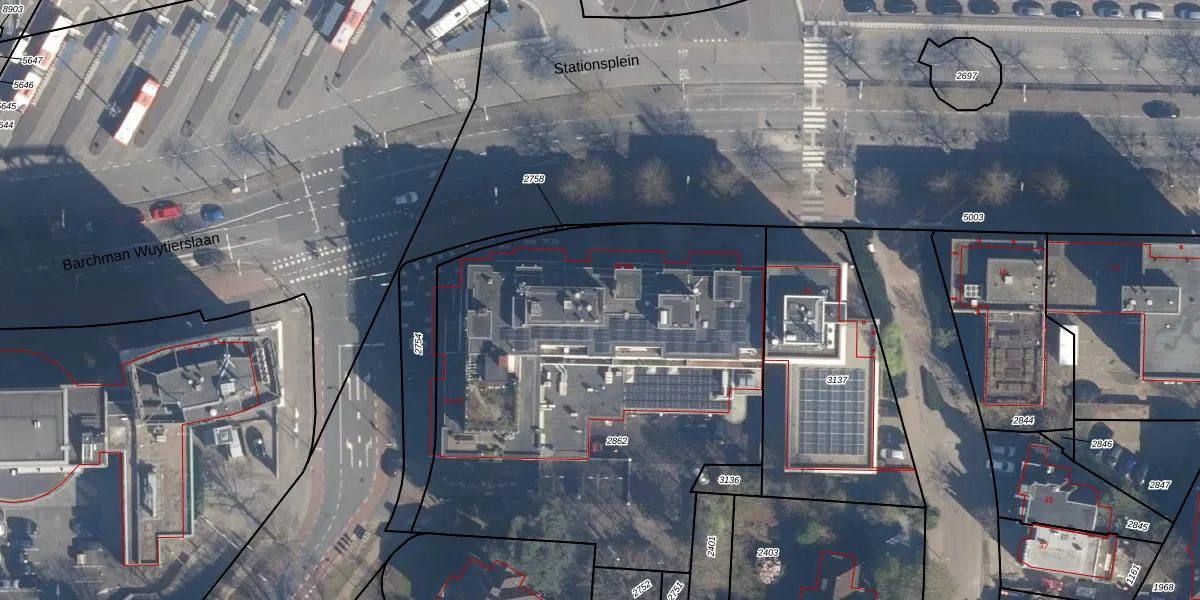Het perceel waarop Stationsplein 46 staat heeft een oppervlakte van 2747 m². Dit is een zeer groot perceel. De perceeloppervlakte wordt geregistreerd door het Kadaster. Gedetailleerde informatie over de maten van dit perceel kunt u vinden in het rapport Kadastrale kaart met maatvoering van Stationsplein 46.