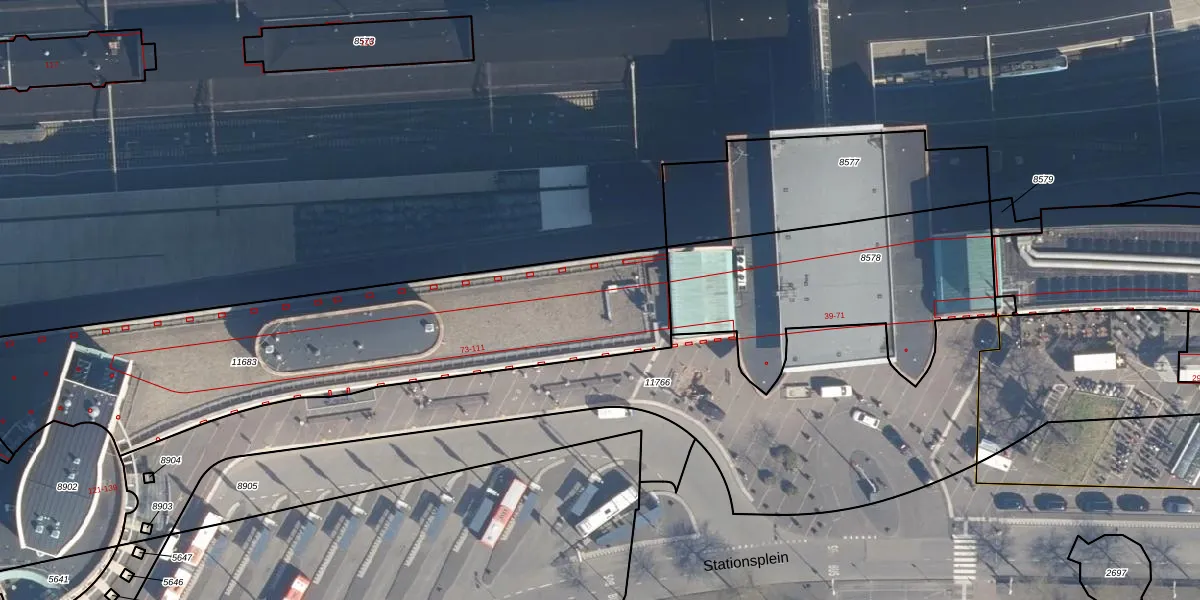 Het perceel waarop Stationsplein 71 staat heeft een oppervlakte van 2025 m². Dit is een zeer groot perceel. De perceeloppervlakte wordt geregistreerd door het Kadaster. Gedetailleerde informatie over de maten van dit perceel kunt u vinden in het rapport Kadastrale kaart met maatvoering van Stationsplein 71.