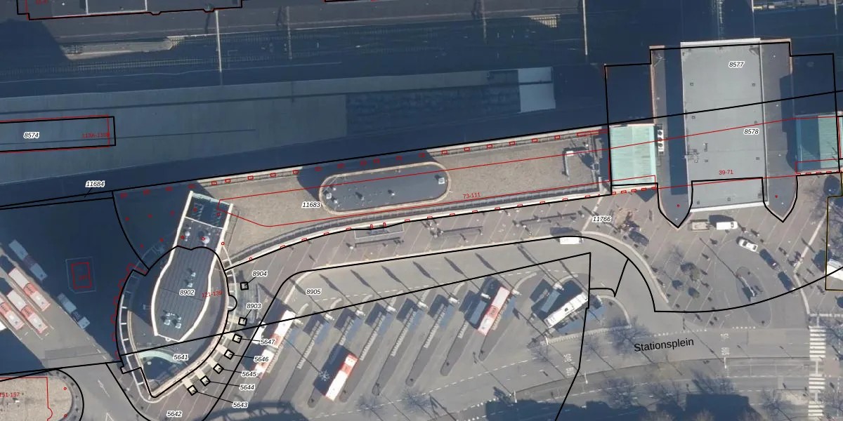 Het perceel waarop Stationsplein 85 staat heeft een oppervlakte van 2025 m². Dit is een zeer groot perceel. De perceeloppervlakte wordt geregistreerd door het Kadaster. Gedetailleerde informatie over de maten van dit perceel kunt u vinden in het rapport Kadastrale kaart met maatvoering van Stationsplein 85.
