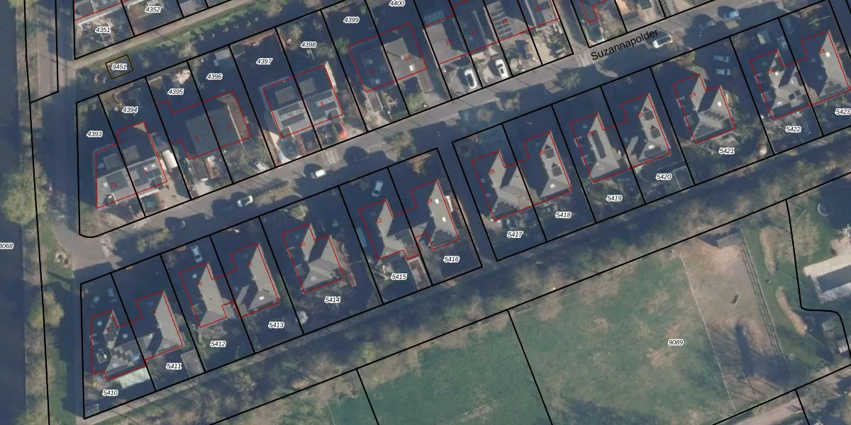 Suzannapolder 14 is gelegen op kadastraal perceel HLD02B5416. Deze kadastrale aanduiding is uniek en wordt gebruikt door het Kadaster om eigendomsrechten en andere zakelijke rechten vast te leggen. Het perceel maakt onderdeel uit van de kadastrale gemeente Hoogland.