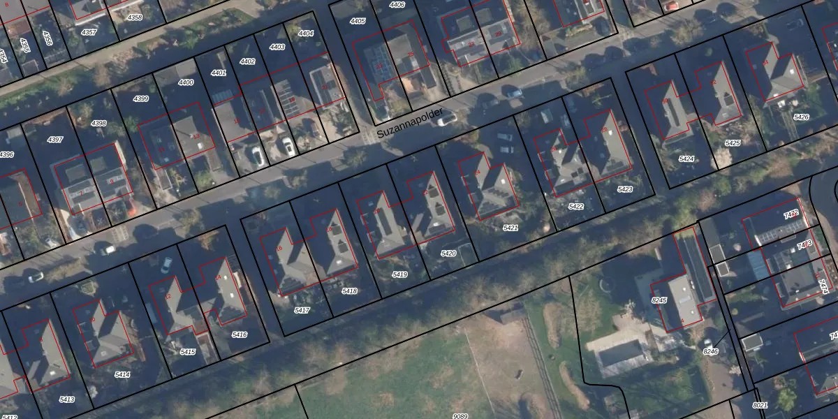 Het perceel waarop Suzannapolder 22 staat heeft een oppervlakte van 370 m². Dit is een groot perceel. De perceeloppervlakte wordt geregistreerd door het Kadaster. Gedetailleerde informatie over de maten van dit perceel kunt u vinden in het rapport Kadastrale kaart met maatvoering van Suzannapolder 22.