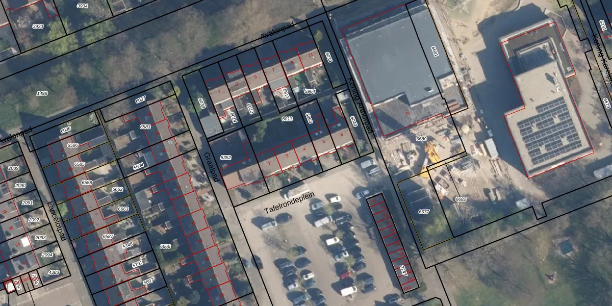 Het perceel waarop Tafelrondeplein 4 staat heeft een oppervlakte van 582 m². Dit is een groot perceel. De perceeloppervlakte wordt geregistreerd door het Kadaster. Gedetailleerde informatie over de maten van dit perceel kunt u vinden in het rapport Kadastrale kaart met maatvoering van Tafelrondeplein 4.