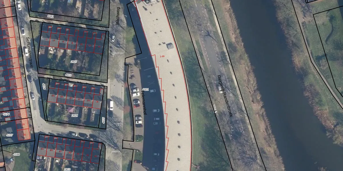 Het perceel waarop Telemannhof 49 staat heeft een oppervlakte van 3820 m². Dit is een zeer groot perceel. De perceeloppervlakte wordt geregistreerd door het Kadaster. Gedetailleerde informatie over de maten van dit perceel kunt u vinden in het rapport Kadastrale kaart met maatvoering van Telemannhof 49.