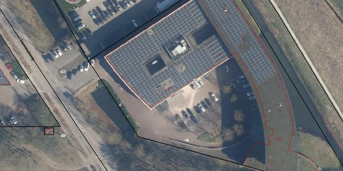 Het perceel waarop Terminalweg 36-A staat heeft een oppervlakte van 9681 m². Dit is een zeer groot perceel. De perceeloppervlakte wordt geregistreerd door het Kadaster. Gedetailleerde informatie over de maten van dit perceel kunt u vinden in het rapport Kadastrale kaart met maatvoering van Terminalweg 36-A.