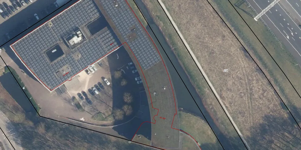 Het perceel waarop Terminalweg 38 staat heeft een oppervlakte van 9681 m². Dit is een zeer groot perceel. De perceeloppervlakte wordt geregistreerd door het Kadaster. Gedetailleerde informatie over de maten van dit perceel kunt u vinden in het rapport Kadastrale kaart met maatvoering van Terminalweg 38.