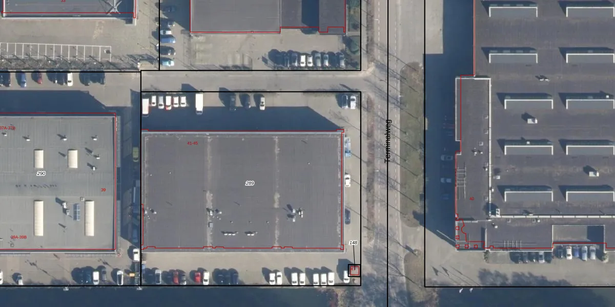 Het perceel waarop Terminalweg 45 staat heeft een oppervlakte van 4500 m². Dit is een zeer groot perceel. De perceeloppervlakte wordt geregistreerd door het Kadaster. Gedetailleerde informatie over de maten van dit perceel kunt u vinden in het rapport Kadastrale kaart met maatvoering van Terminalweg 45.
