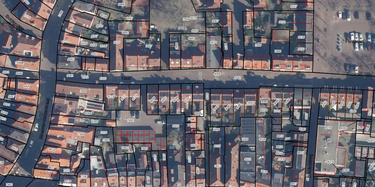 Het perceel waarop Teut 23 staat heeft een oppervlakte van 103 m². Dit is een middelgroot perceel. De perceeloppervlakte wordt geregistreerd door het Kadaster. Gedetailleerde informatie over de maten van dit perceel kunt u vinden in het rapport Kadastrale kaart met maatvoering van Teut 23.