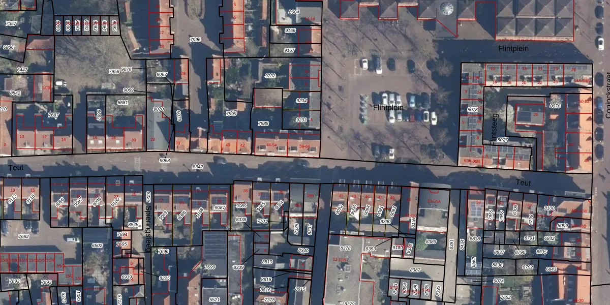 Het perceel waarop Teut 58 staat heeft een oppervlakte van 330 m². Dit is een groot perceel. De perceeloppervlakte wordt geregistreerd door het Kadaster. Gedetailleerde informatie over de maten van dit perceel kunt u vinden in het rapport Kadastrale kaart met maatvoering van Teut 58.