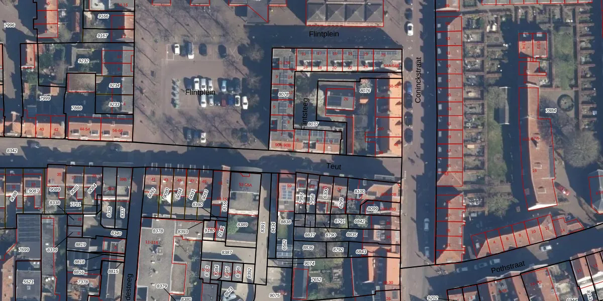 Het perceel waarop Teut 92 staat heeft een oppervlakte van 660 m². Dit is een groot perceel. De perceeloppervlakte wordt geregistreerd door het Kadaster. Gedetailleerde informatie over de maten van dit perceel kunt u vinden in het rapport Kadastrale kaart met maatvoering van Teut 92.