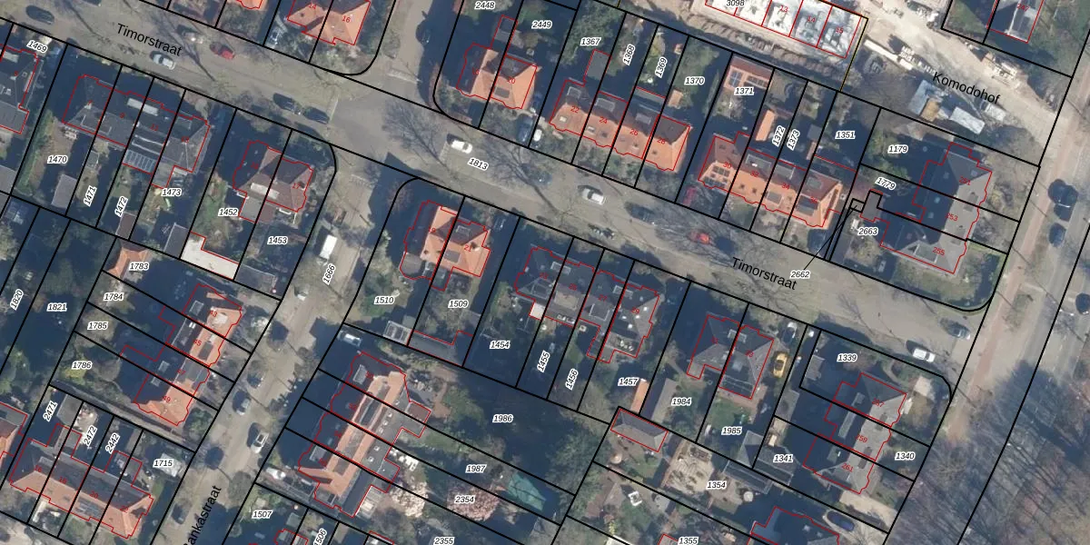 Het perceel waarop Timorstraat 23 staat heeft een oppervlakte van 315 m². Dit is een groot perceel. De perceeloppervlakte wordt geregistreerd door het Kadaster. Gedetailleerde informatie over de maten van dit perceel kunt u vinden in het rapport Kadastrale kaart met maatvoering van Timorstraat 23.