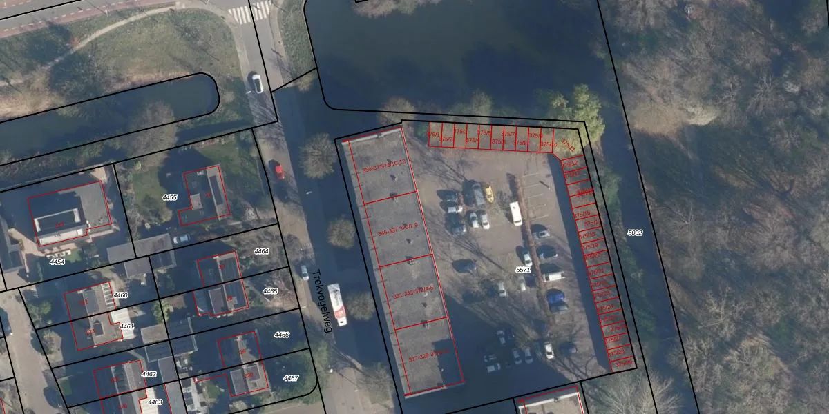 Trekvogelweg 373-9 is gelegen op kadastraal perceel AMF00A5571. Deze kadastrale aanduiding is uniek en wordt gebruikt door het Kadaster om eigendomsrechten en andere zakelijke rechten vast te leggen. Het perceel maakt onderdeel uit van de kadastrale gemeente Amersfoort.