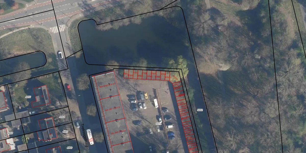 Het perceel waarop Trekvogelweg 375-7 staat heeft een oppervlakte van 3865 m². Dit is een zeer groot perceel. De perceeloppervlakte wordt geregistreerd door het Kadaster. Gedetailleerde informatie over de maten van dit perceel kunt u vinden in het rapport Kadastrale kaart met maatvoering van Trekvogelweg 375-7.
