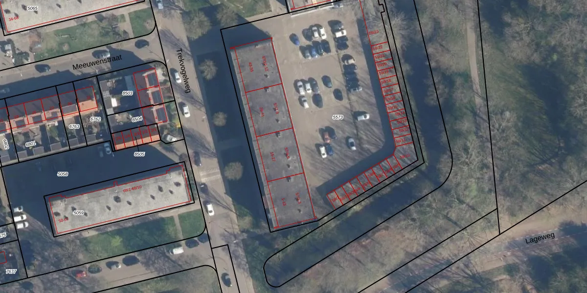 Het perceel waarop Trekvogelweg 57-5 staat heeft een oppervlakte van 3662 m². Dit is een zeer groot perceel. De perceeloppervlakte wordt geregistreerd door het Kadaster. Gedetailleerde informatie over de maten van dit perceel kunt u vinden in het rapport Kadastrale kaart met maatvoering van Trekvogelweg 57-5.