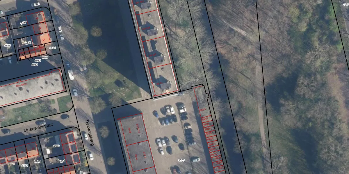 Het perceel waarop Trekvogelweg 75 staat heeft een oppervlakte van 2265 m². Dit is een zeer groot perceel. De perceeloppervlakte wordt geregistreerd door het Kadaster. Gedetailleerde informatie over de maten van dit perceel kunt u vinden in het rapport Kadastrale kaart met maatvoering van Trekvogelweg 75.