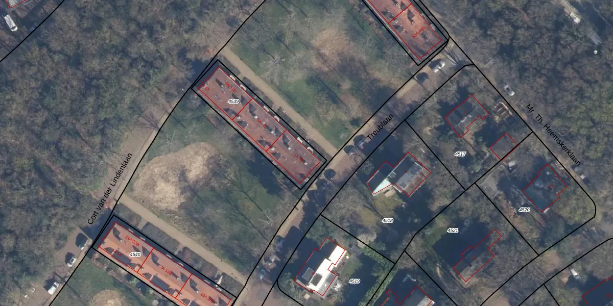 Treublaan 1-A is gelegen op kadastraal perceel AMF00C4539. Deze kadastrale aanduiding is uniek en wordt gebruikt door het Kadaster om eigendomsrechten en andere zakelijke rechten vast te leggen. Het perceel maakt onderdeel uit van de kadastrale gemeente Amersfoort.