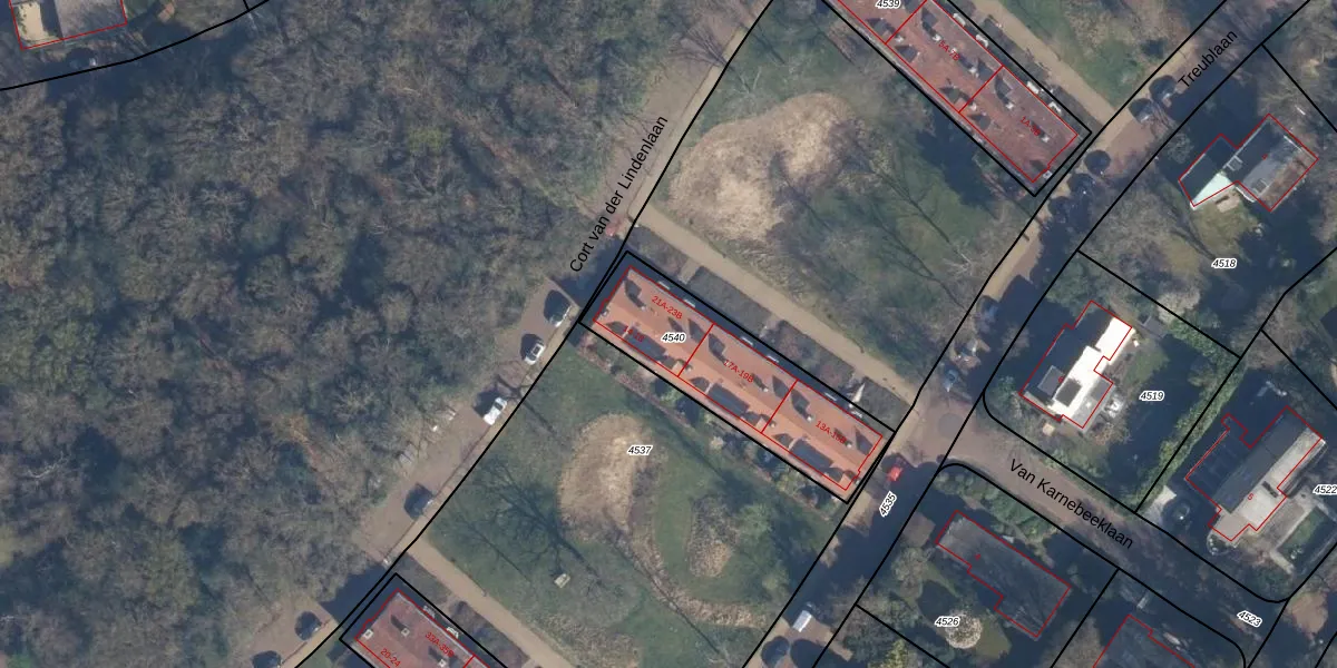 Treublaan 21-B is gelegen op kadastraal perceel AMF00C4540. Deze kadastrale aanduiding is uniek en wordt gebruikt door het Kadaster om eigendomsrechten en andere zakelijke rechten vast te leggen. Het perceel maakt onderdeel uit van de kadastrale gemeente Amersfoort.