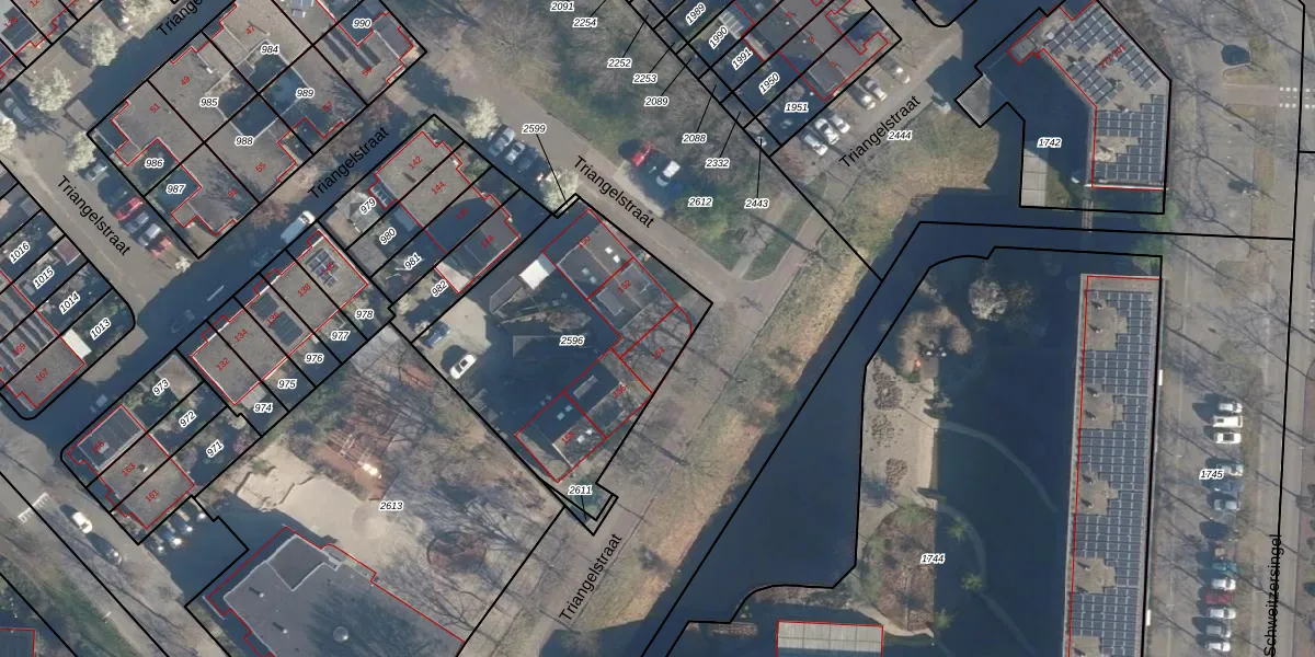 Triangelstraat 154 is gelegen op kadastraal perceel AMF00N2596. Deze kadastrale aanduiding is uniek en wordt gebruikt door het Kadaster om eigendomsrechten en andere zakelijke rechten vast te leggen. Het perceel maakt onderdeel uit van de kadastrale gemeente Amersfoort.