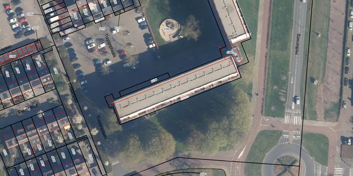 Het perceel waarop Turpijnplaats 27 staat heeft een oppervlakte van 1854 m². Dit is een zeer groot perceel. De perceeloppervlakte wordt geregistreerd door het Kadaster. Gedetailleerde informatie over de maten van dit perceel kunt u vinden in het rapport Kadastrale kaart met maatvoering van Turpijnplaats 27.