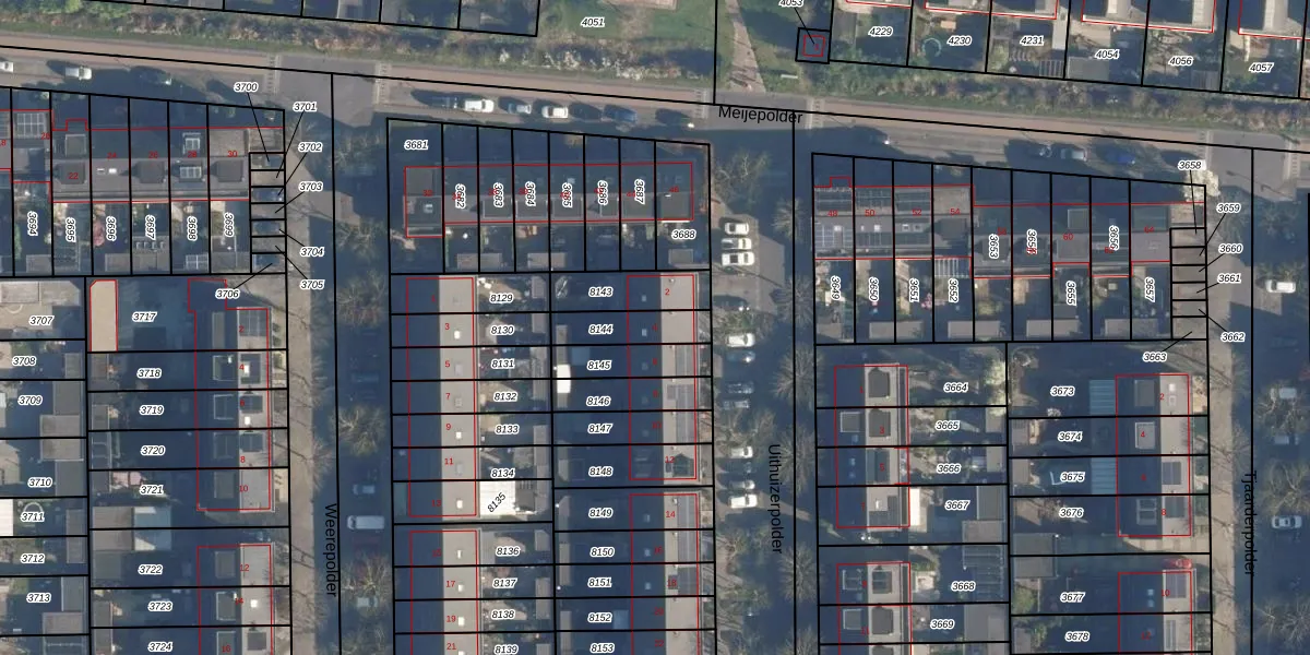 Gebruik de zoekbalk of klik op een perceel voor informatie over de adressen binnen dit perceel.